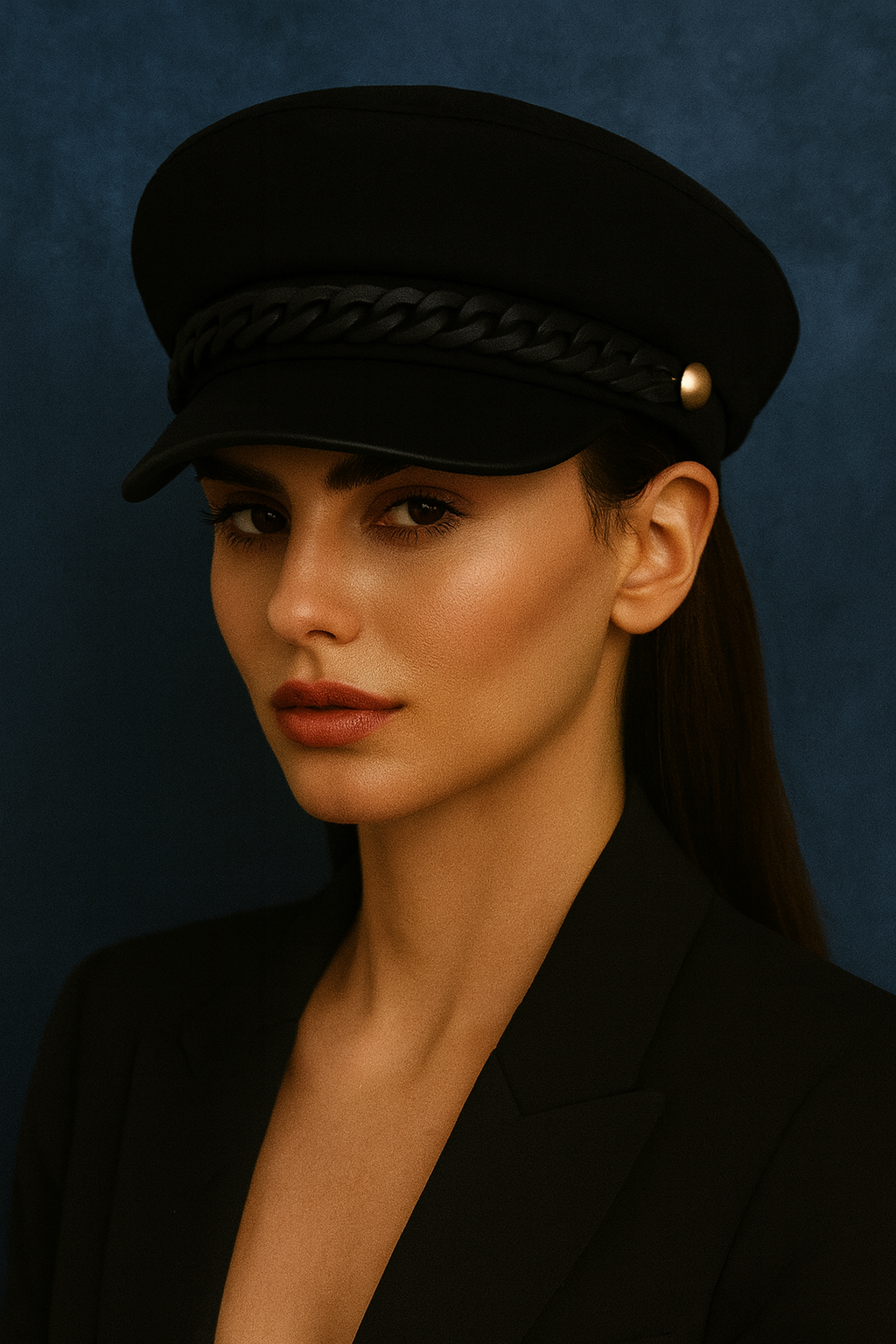 Chain Trim Detailed Black Wool Blend Baker Boy Hat