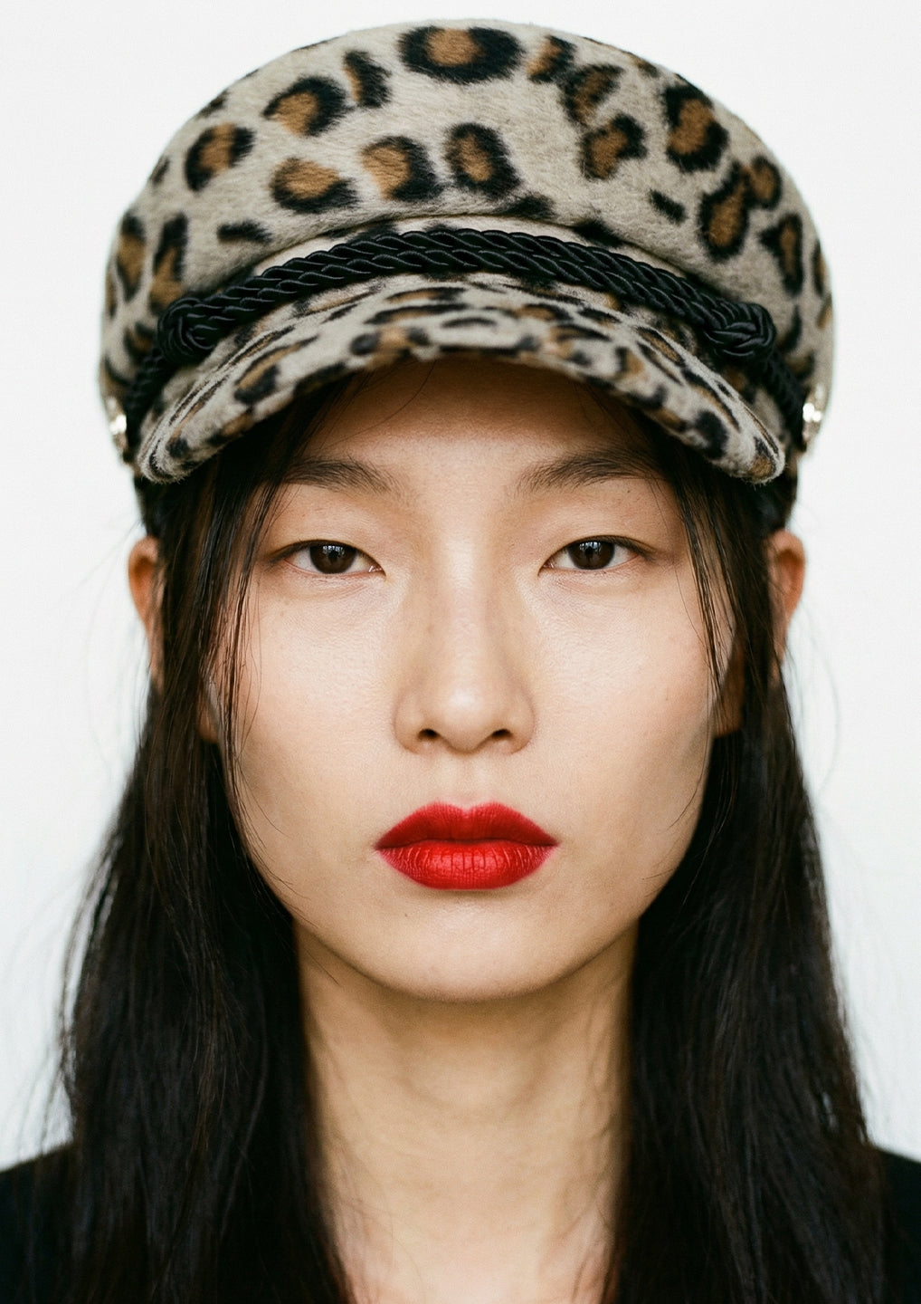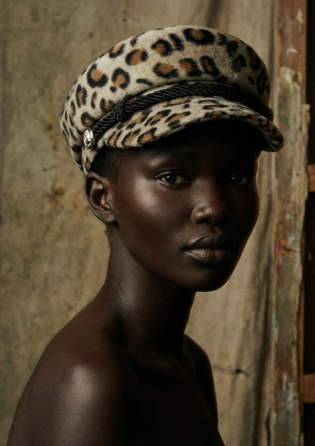 Braided Trim Leopard Print Baker Boy Hat