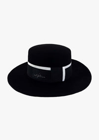 Handmade Black & White Wool Wide Brim Boater Hat - S
